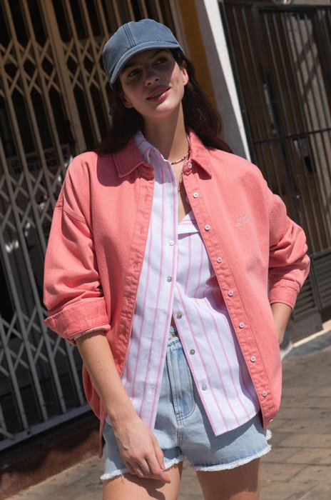 Carpe Diem > Hauts CALLY RAYURES ROSE Référence produit : 90263693 " Chemise oversize à rayures " Ouverture au dos avec boutonnage " Boutons nacre à l'avant et au dos " Manches 3/4 chauve-souris " Forme liquette à la base " Empiècement au dos Taille : S M L 75 € Quantité : 1 2 Retour à la catégorie - Hauts
